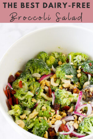 Sharing a recipe for the best dairy-free broccoli salad. This is the perfect side dish for dinners, delicious leftovers for lunch, and an awesome healthy summer BBQ or potluck side dish. Hey friends! How’s the day going so far? We’re back in town after a trip to Phoenix for Nationals, and have a mountain of…