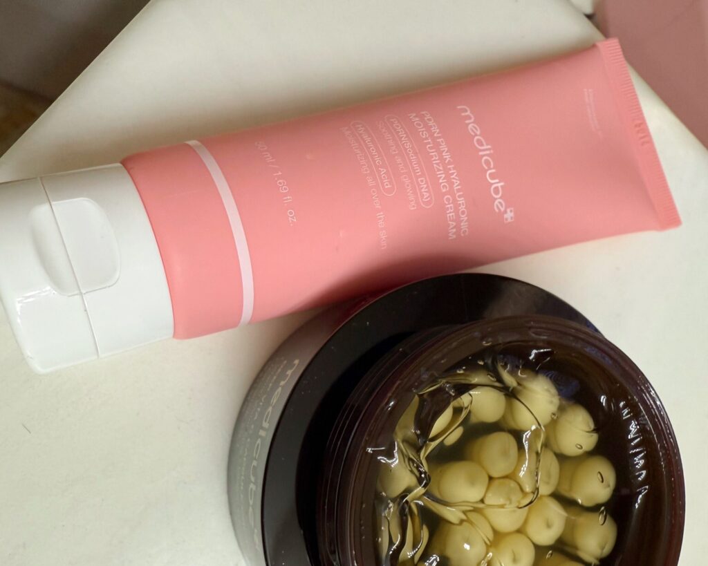 Korean skincare! You guys know Liv is obsessed with all things K Pop and she loves to visit the stores to look at all of the merch/albums, etc. I’m happy to take her because I love looking at the skincare products. While I’m pretty happy with my skincare routine, I always like to try new things, so I picked up this Vitamin C gel (you pop the capsule on your hand and add the gel) and this serum, which I plan to use on my veiny dinosaur hands.
