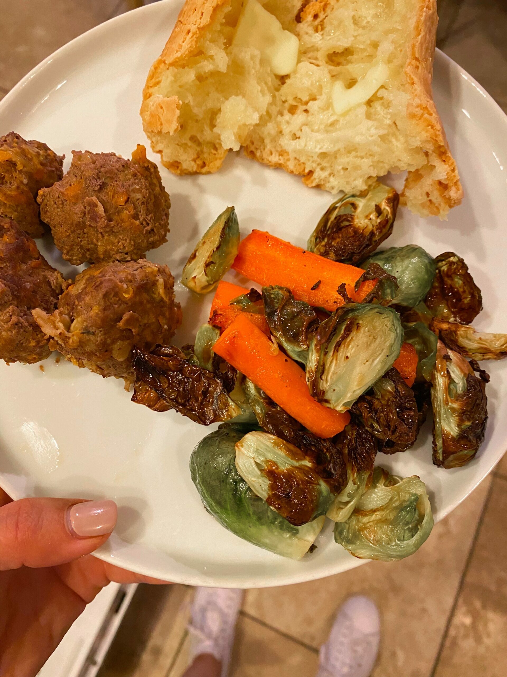 Roasted carrots & Brussels sprouts in butter & coconut oil