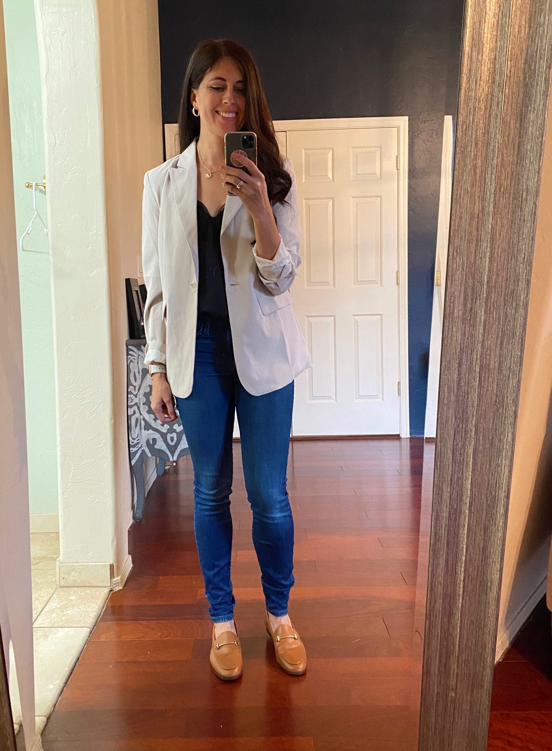I’d been looking for a neutral oversized blazer, but didn’t want to spend a ton. This one is perfect. It’s well-made, and looks cute with jeans and a tank, or with a black dress and Chelsea boots.