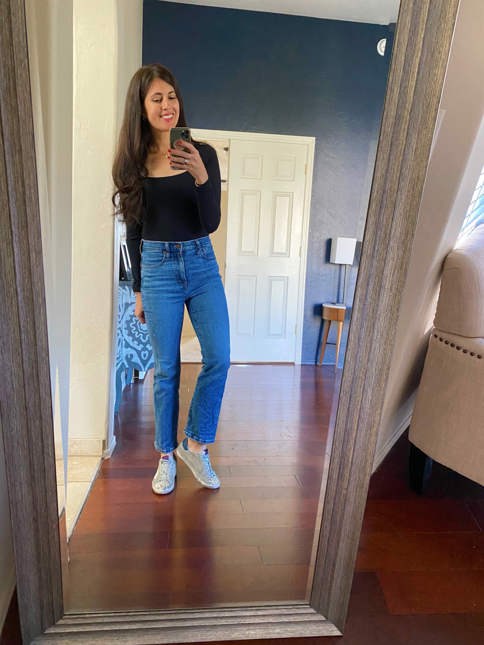 I’d been wanting a black classic bodysuit and love the square neck of this one. They have a lot of colors available in this one, too!