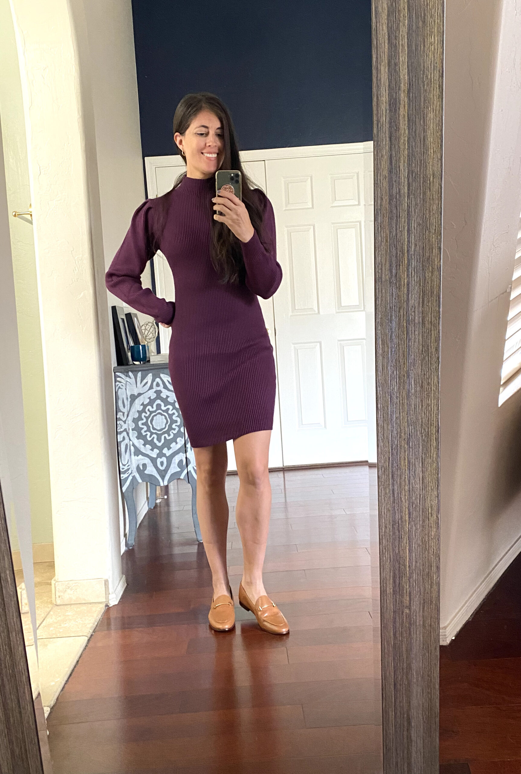 This sweater dress looks and feels way more expensive than it is. I’ve been wearing it a lot with booties and Chelsea boots. They have tons of colors!