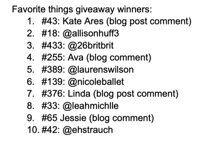 CONGRATS TO OUR FAVORITE THINGS WINNERS! Wahoo!